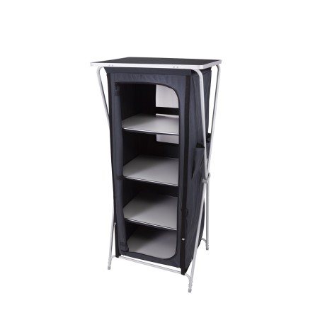 Armadio da campeggio di pratiche dimensioni, fornito di quattro ripiani resistenti. Ideale come piccola dispensa o ripostiglio.